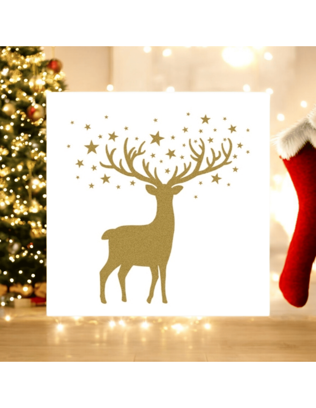 Serviettes en papier avec un jolie décor pour les fêtes avec CERF doré sur fond blanc 3 plis pour décorer vos tables de fin d'année.