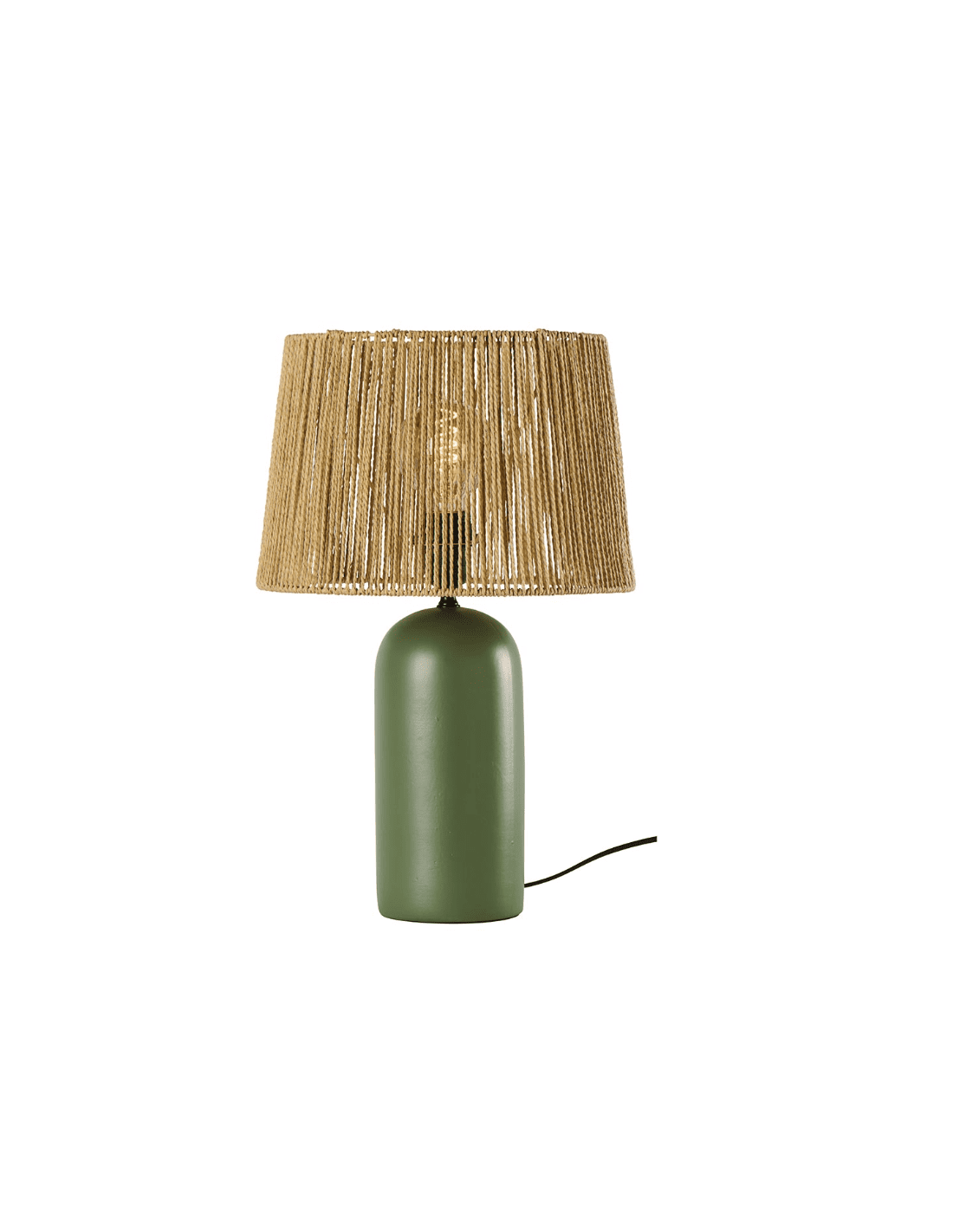 Une lampe à poser moderne et cosy dans votre intérieur avec sa base cylindrique en poterie et son abat-jour en papier effet cordage