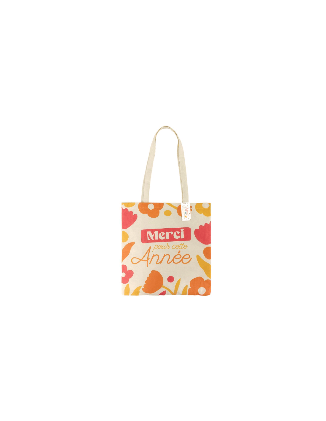 Craquez pour cet accessoire mode utile, élégant et chic : une idée cadeau idéale pour montrer toute l'affection que vous portez à votre enseignant(e). Ce sac possède des fleurs orange, jaunes et rouges ainsi que la mention "Merci pour cette année".