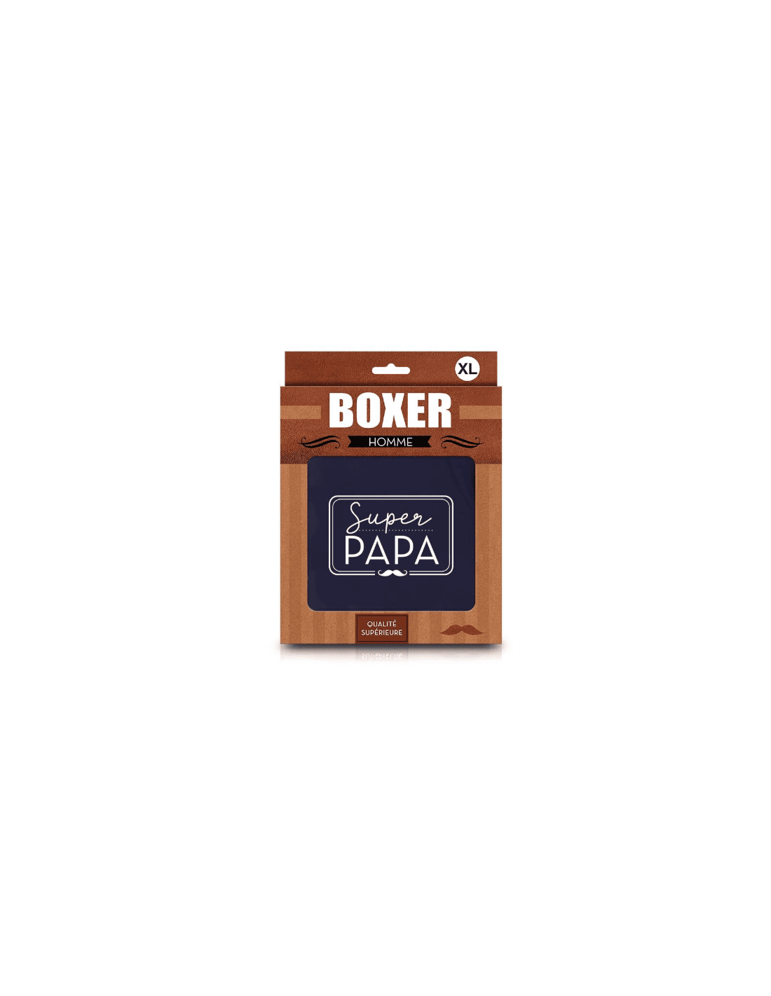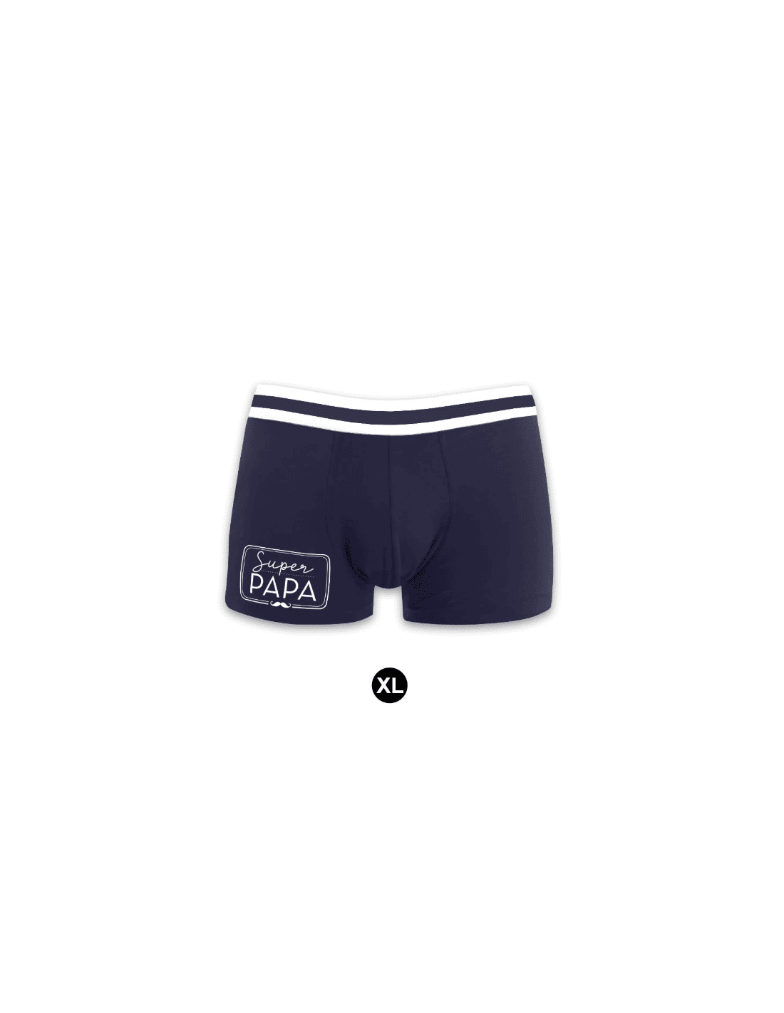 BOXER "SUPER PAPA" TAILLE XL. Couleur Blue jeans, noire et gris perle avec une touche de cuir et un logo impression argenté. Idéal pour les petits cadeaux plaisir. Les produits de cette collection sont de qualité supérieure parce que les hommes le valent bien.