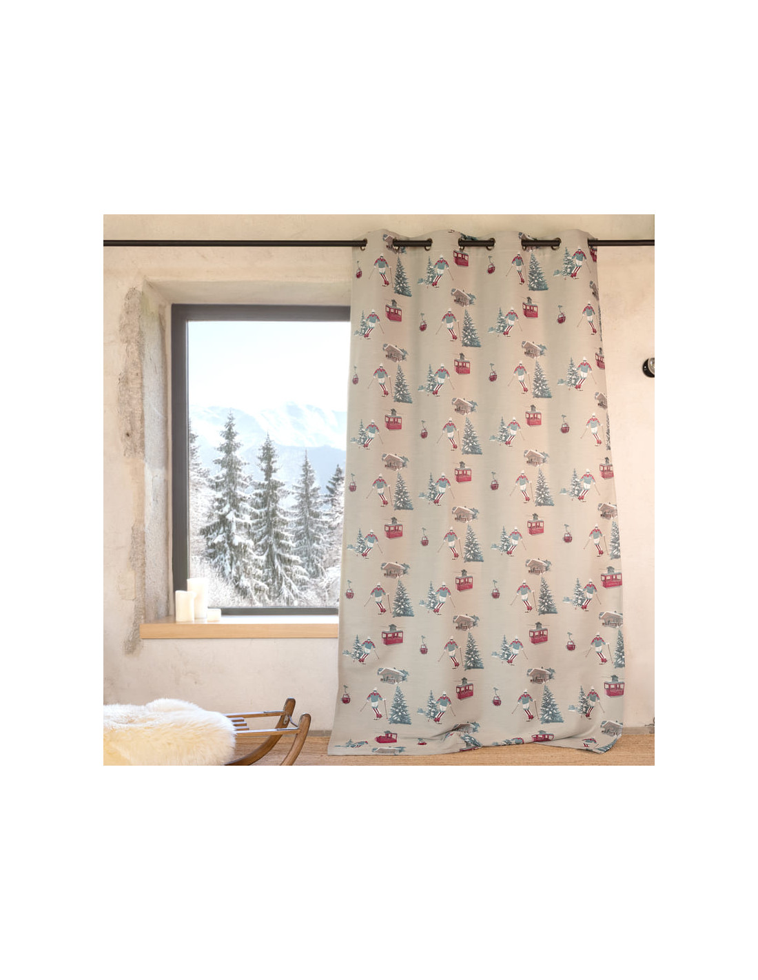 Apportez une touche d'authenticité et de chaleur à votre intérieur avec le rideau Altitude, un véritable hommage à l'univers de la montagne. Confectionné dans un jacquard de qualité, ce rideau allie élégance et robustesse pour une décoration qui dure dans le temps. Son décor Montagnard raffiné met en scène des motifs emblématiques tels qu’un skieur en action, des chalets enneigés, des sapins majestueux et des télécabines traversant un paysage alpin.