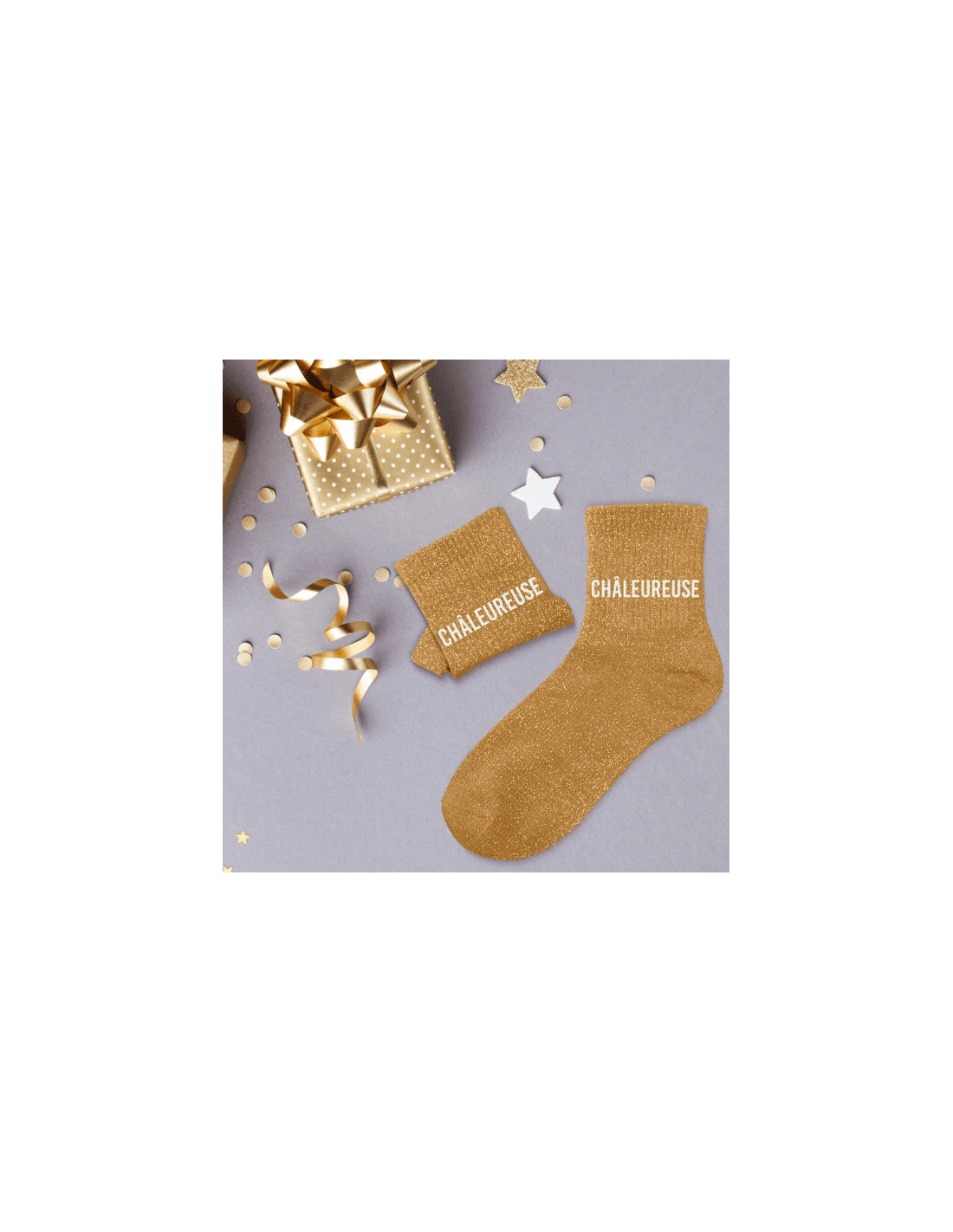 CHAUSSETTES PAILLETTES CHALEUREUSE. A la recherche d'une paire de chaussettes originale qui tient au chaud ? Notre paire de chaussettes à paillettes "Chaleureuse" est l'accessoire Mode idéal !