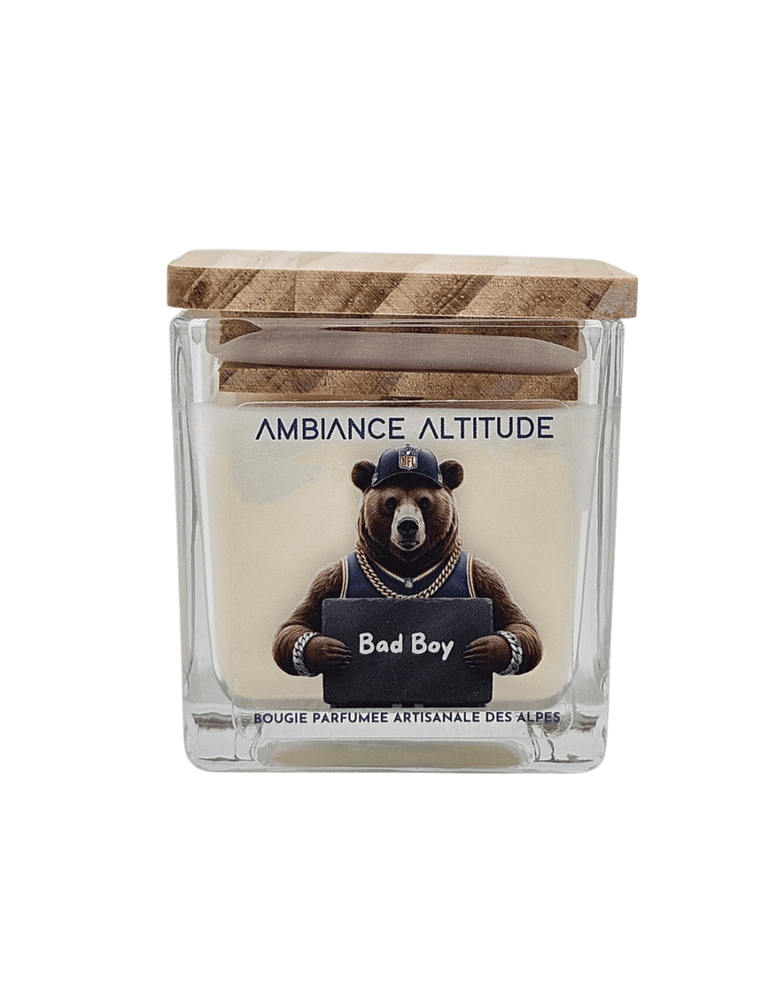 Son design amusant ne manquera pas de vous séduire. Sur l’étiquette, vous retrouverez Léonard, notre ours iconique, incarnant avec humour et élégance l’esprit “bad boy” moderne : fort, affirmé, mais toujours avec une pointe d’autodérision. Cet univers graphique original rend la bougie aussi décorative qu’agréable à utiliser. Elle trouvera sa place aussi bien dans un salon, un bureau ou une chambre, apportant une ambiance cosy sans perdre son identité masculine.