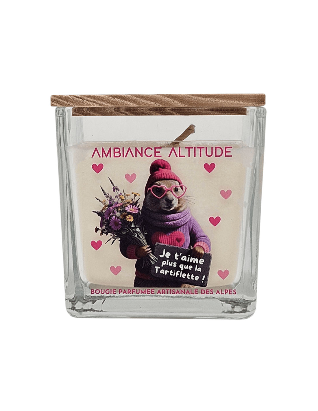 Bougie Ambiance "Altitude Je t’aime plus que la Tartiflette" – Avec Simone la Marmotte