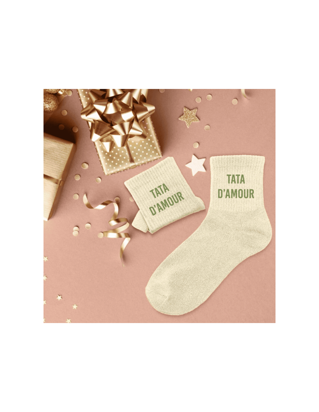 A la recherche d'une paire de chaussettes originale qui tient votre tata au chaud ? Notre paire de chaussettes à paillettes "Tata d'Amour" est l'accessoire Mode & Beauté idéal !