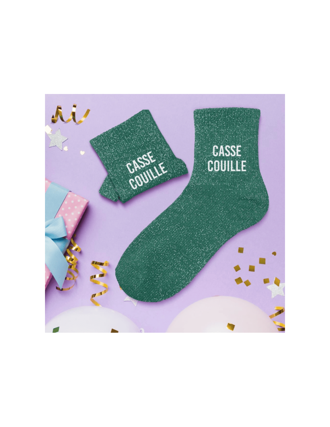 À la recherche d'une paire de chaussettes originale pour l'été ? Notre paire de chaussettes courtes à paillettes "Casse Couille" est l'accessoire Mode idéal !