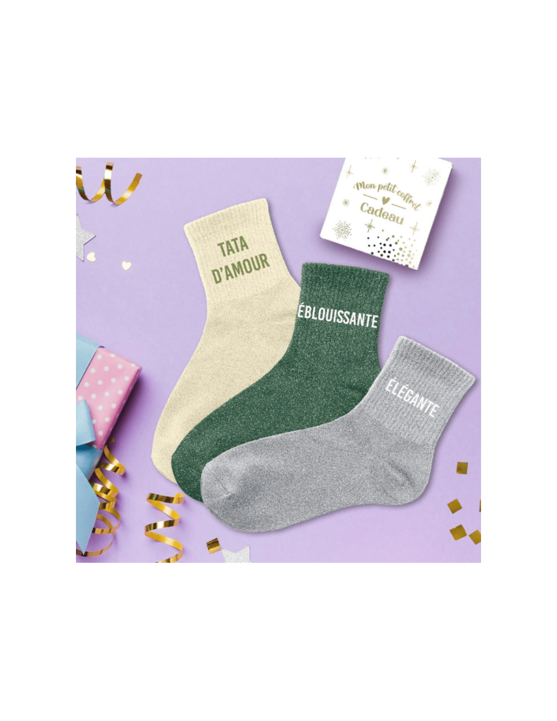 Ce coffret trio de chaussettes paillettes est une idée cadeau idéale à offrir à votre tata chérie en toutes circonstances.