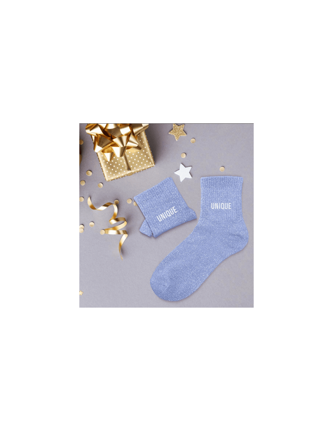 A la recherche d'une paire de chaussettes originale qui tient au chaud ? Notre paire de chaussettes à paillettes "Unique" est l'accessoire Mode & Beauté idéal !