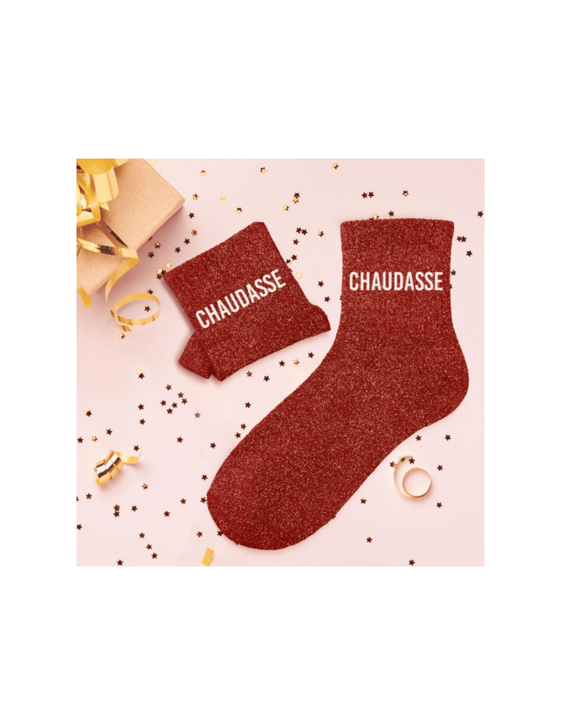 Ces chaussettes rouge à paillettes avec l'inscription chaudasse sont la garantie de passer un été avec style !