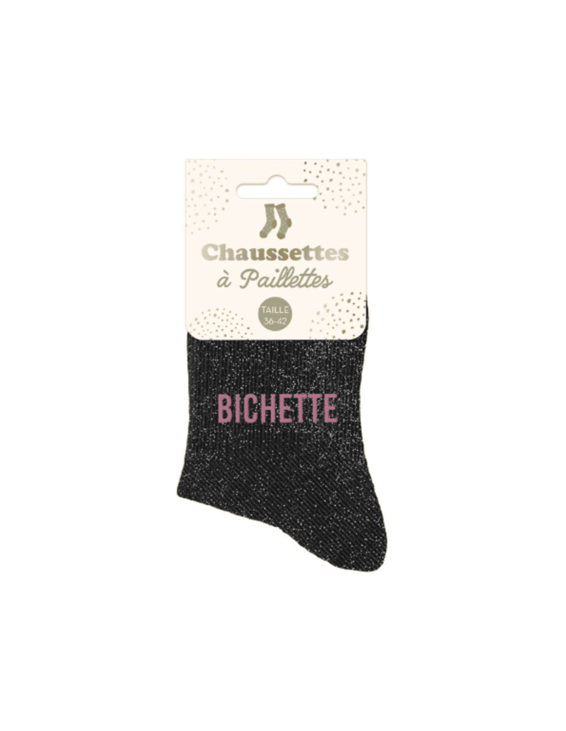 A la recherche d'une paire de chaussettes originale qui tient au chaud ? Notre paire de chaussettes à paillettes "Bichette" est l'accessoire Mode idéal !