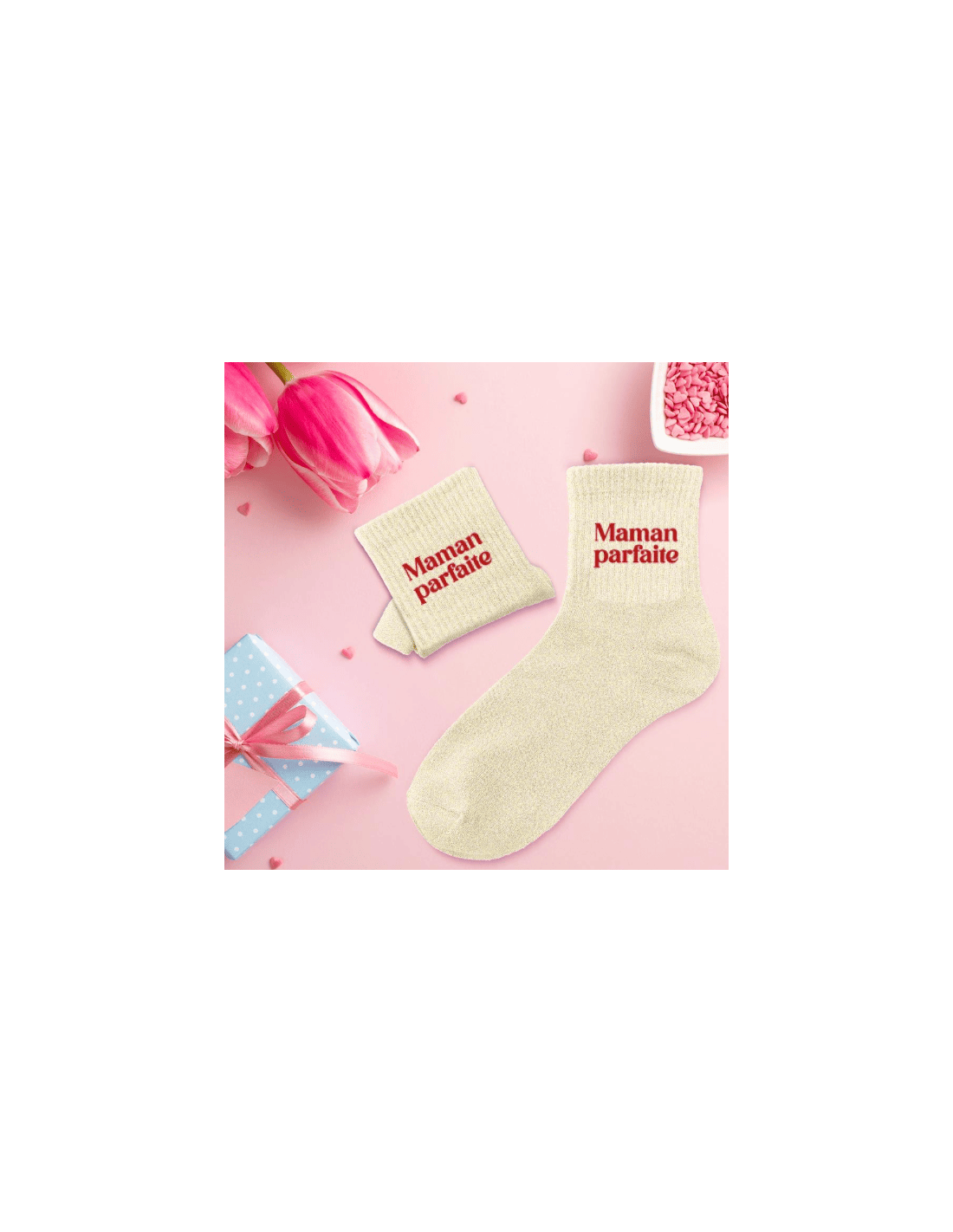 CHAUSSETTES PAILLETTES MAMAN PARFAITE. A la recherche d'une paire de chaussettes originale qui tiendra au chaud votre maman ? Notre paire de chaussettes à paillettes "Maman parfaite" est l'accessoire Mode idéal qui la ravira !