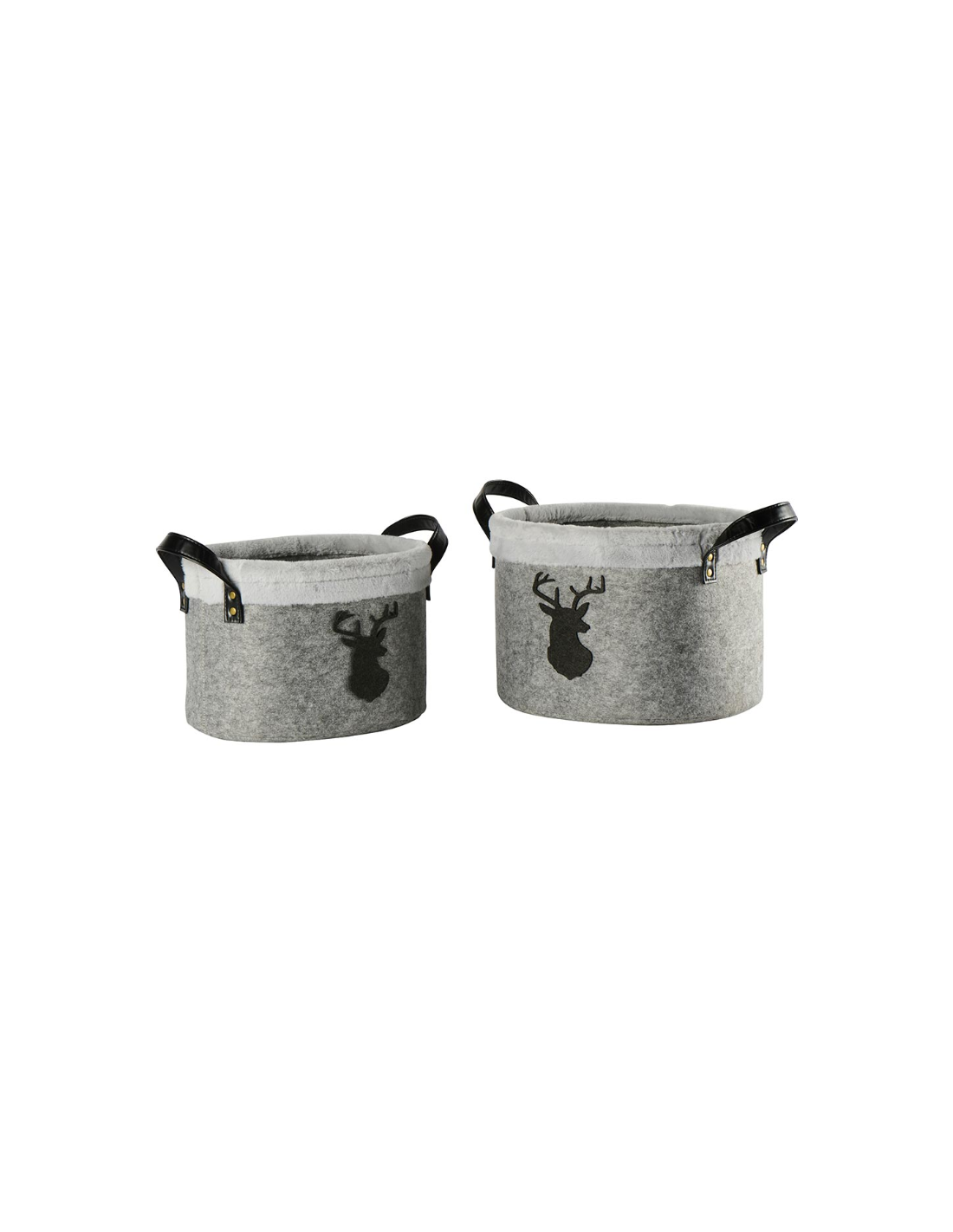 Vous allez adorer le coté douillet et cocooning de ce duo de corbeilles en feutrine avec bordure en peluche grise et leurs jolies tête de cerfs.