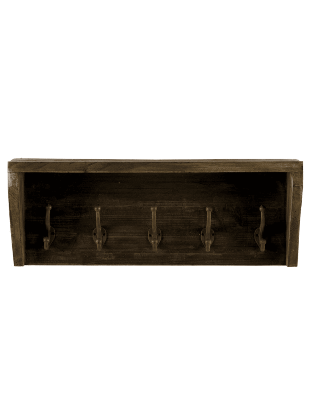 Étagère murale en bois rustique avec 5 patères – charme authentique et fonctionnalité