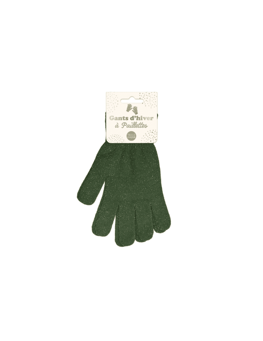 Proposés en taille unique, ces gants d'hiver kaki arborent des paillettes dorées et sont la garantie de passer un hiver bien au chaud.