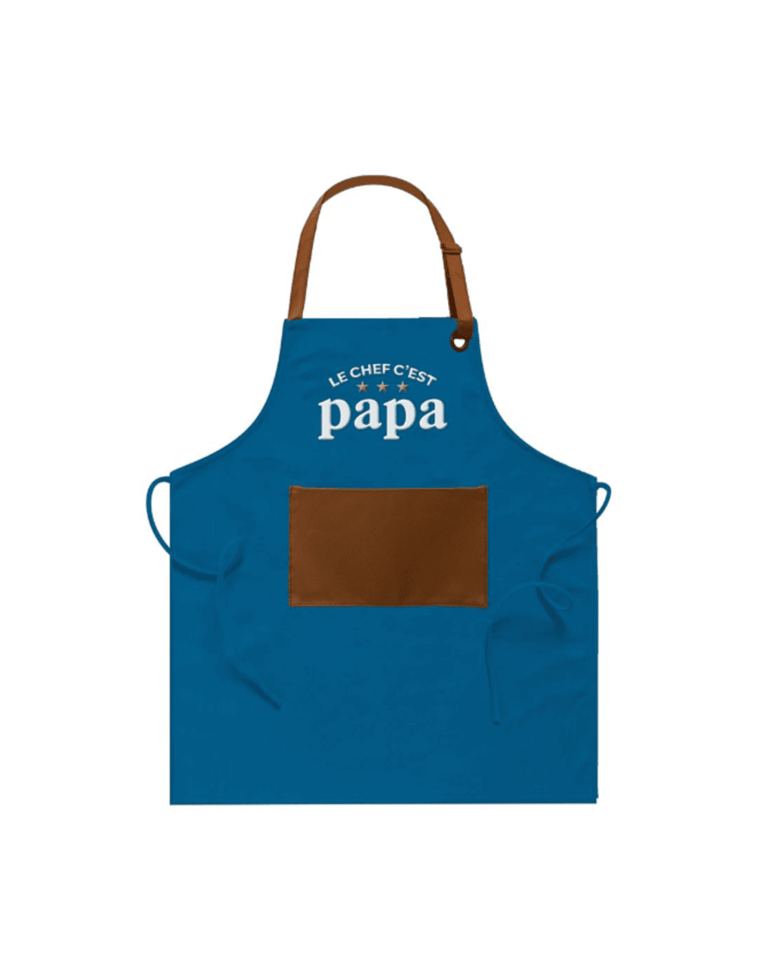 Conçu en coton, ce tablier se passe autour du cou et se noue dans le dos. Il arbore la mention brodée "Papa Chef Etoilé" en blanc au centre et sa poche est fabriquée en simili-cuir.