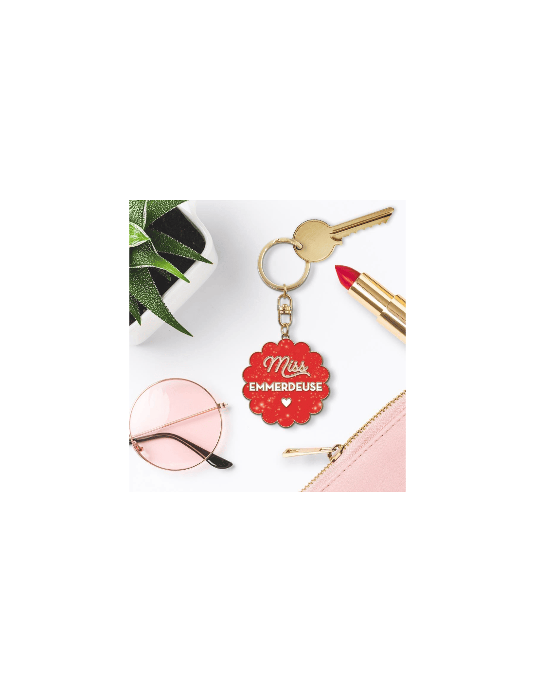 PORTE -CLÉ "MISS EMMERDEUSE" Vous souhaitez faire un cadeau original à un proche ? Notre porte-clés "Miss emmerdeuse" est la solution !