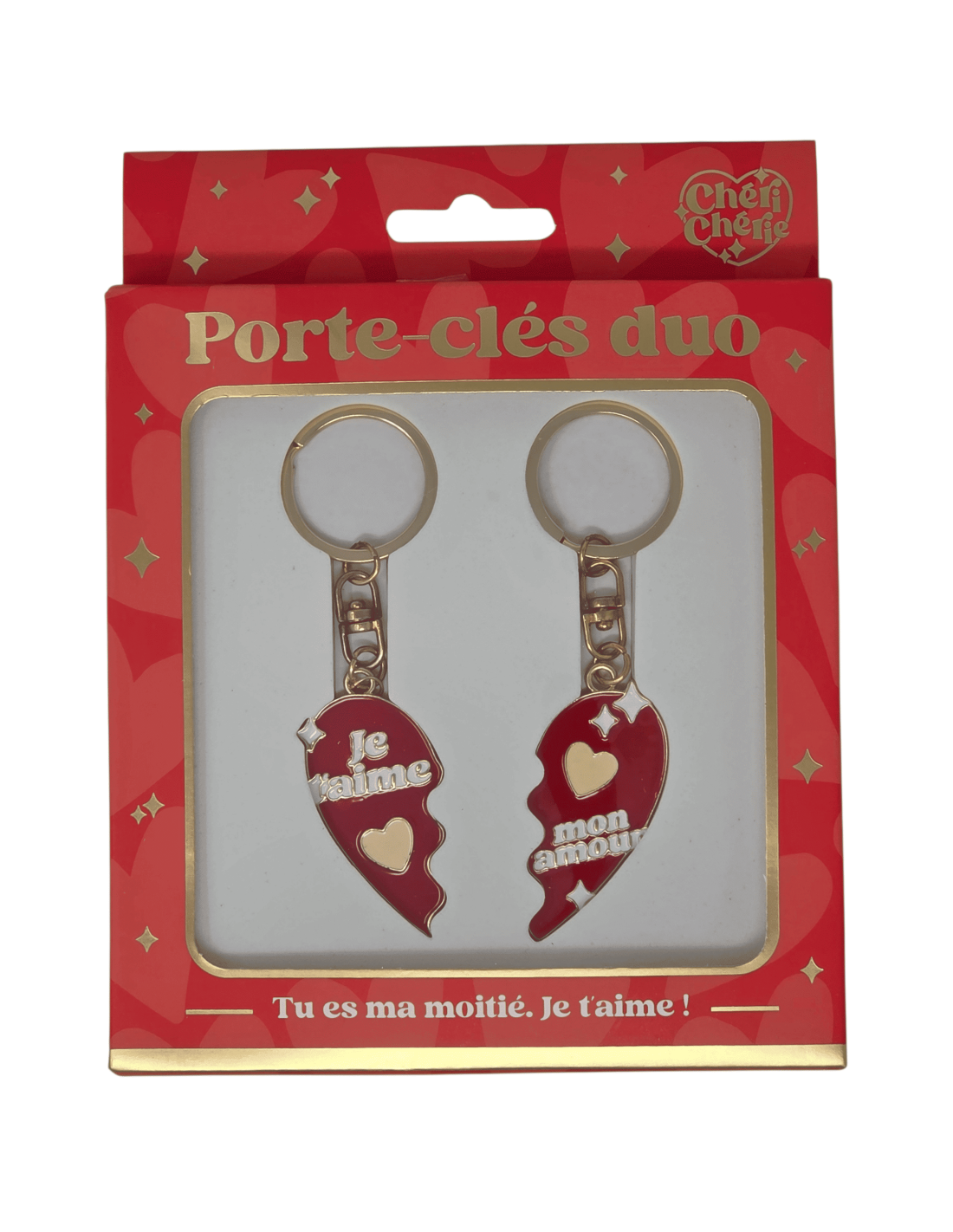 Ce porte clé en métal doré est très pratique pour retrouver vos clés au fond d'un sac. Grâce à sa mention " JE T'AIME " et " MON AMOUR " partager le coeur avec votre moitié.