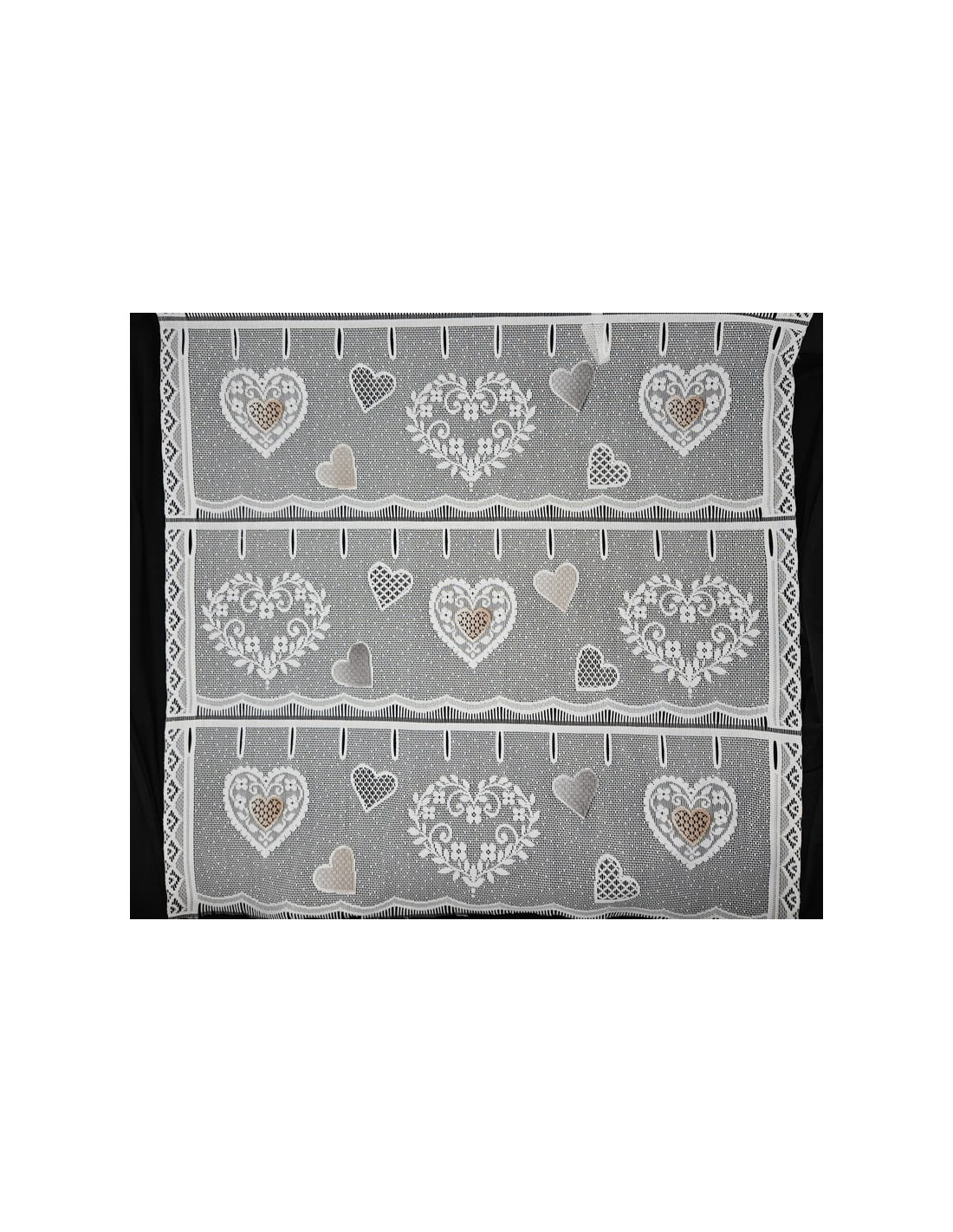 Un joli voilage pour vos fenêtres d'intérieur. Vous allez aimer ses jolis dessins de cœurs avec une légère touche de couleur marron.