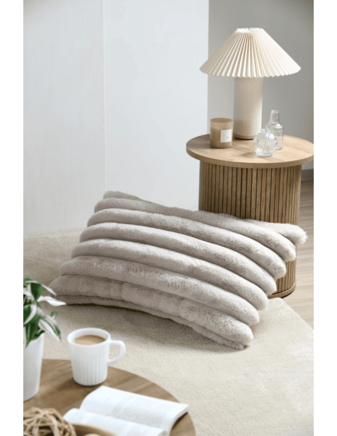 Coussin fausse fourrure POLARY écru 50 x 50 cm