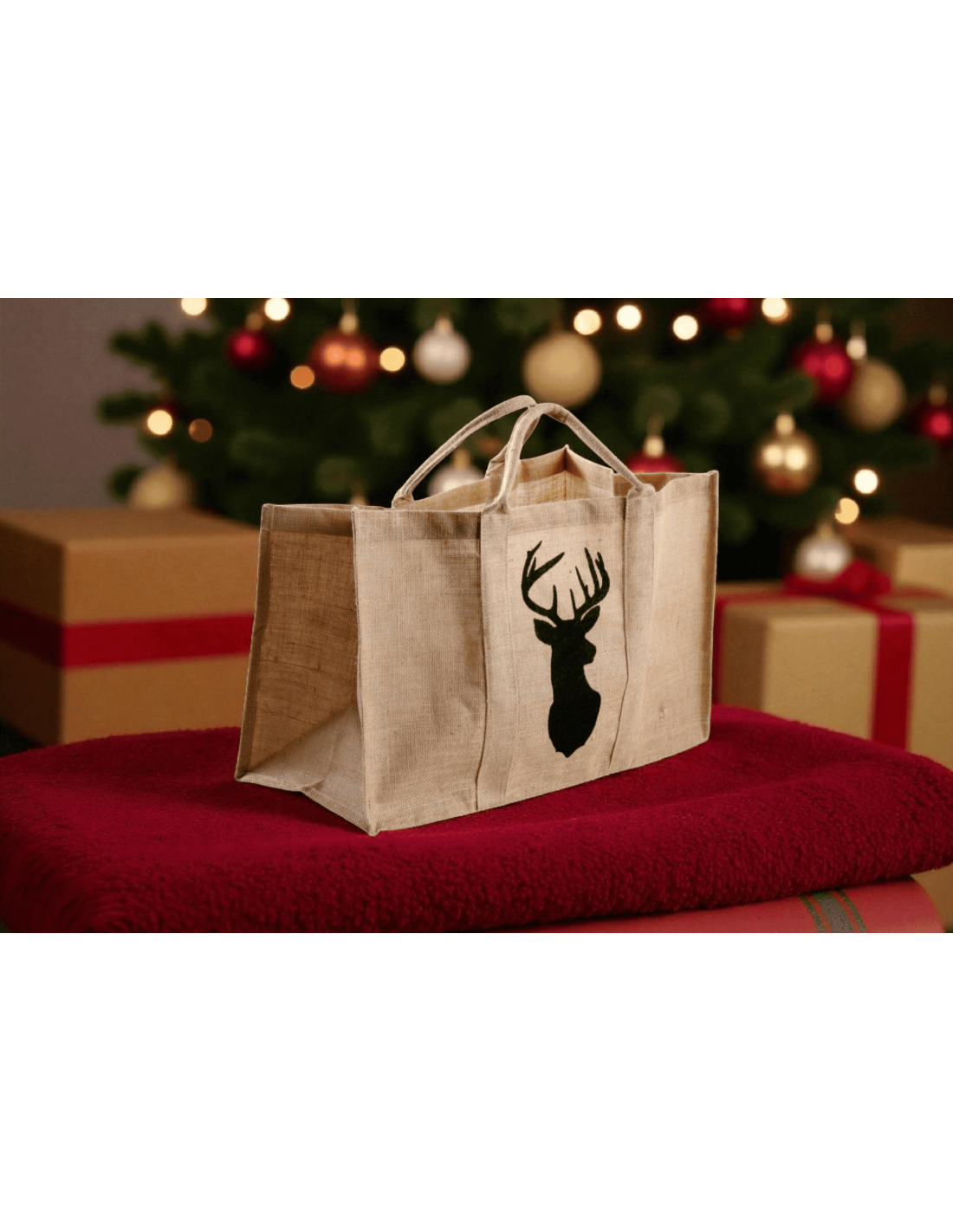 Sac à bûches jute décor CERF 60 X 40 X 30 CM