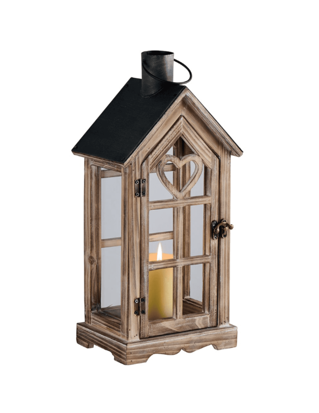 Lanterne en bois blanchi et coeurs ajourés