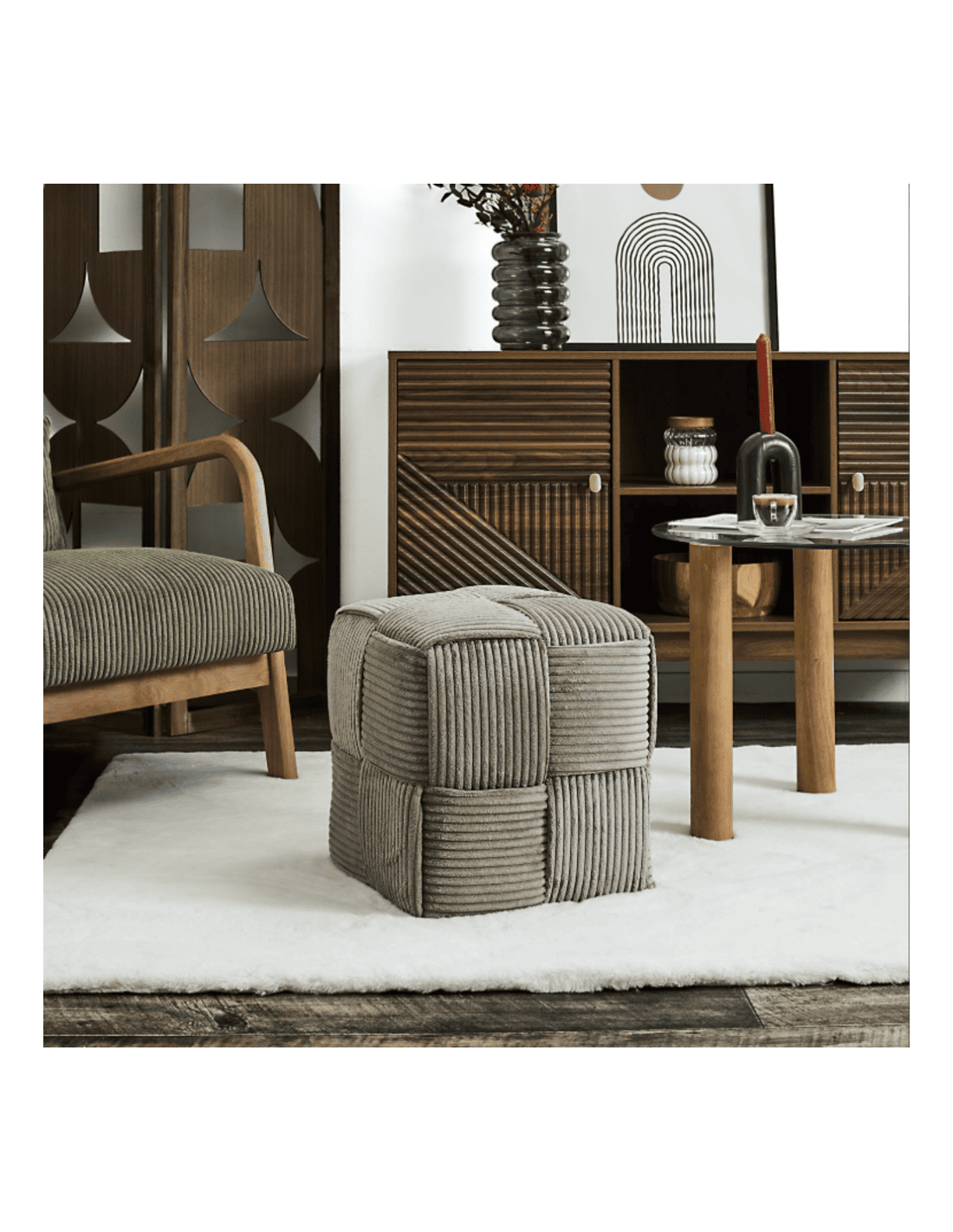 Pouf côtelé SCOTT taupe