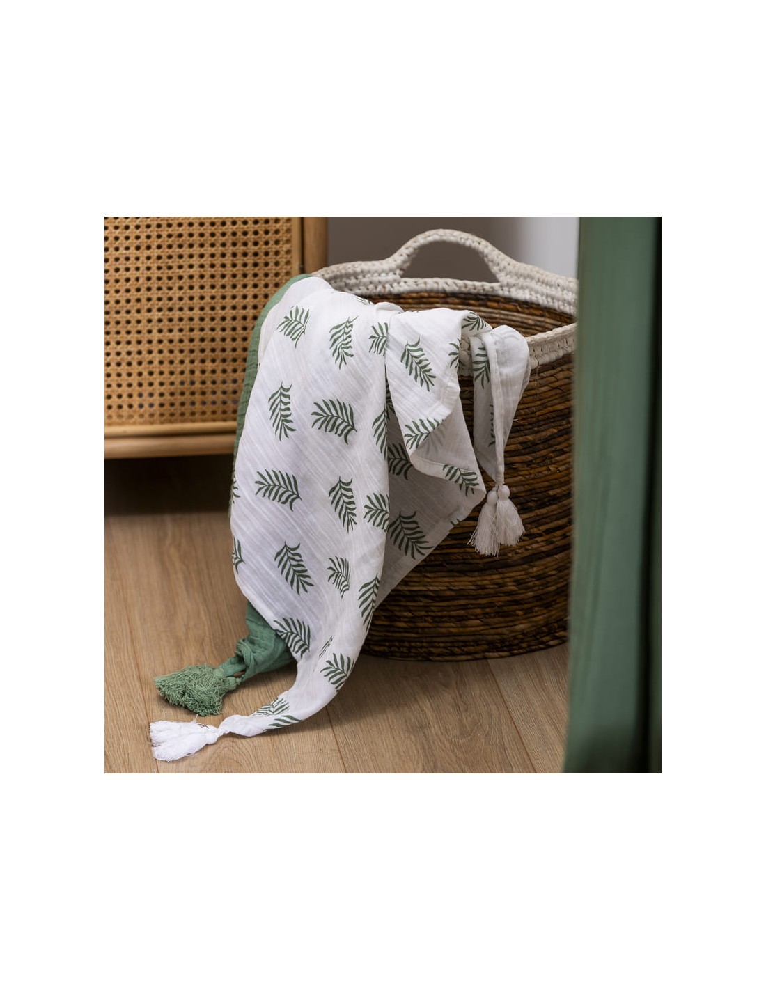 PLAID double gaze blanc - sauge 130 x 150 cm