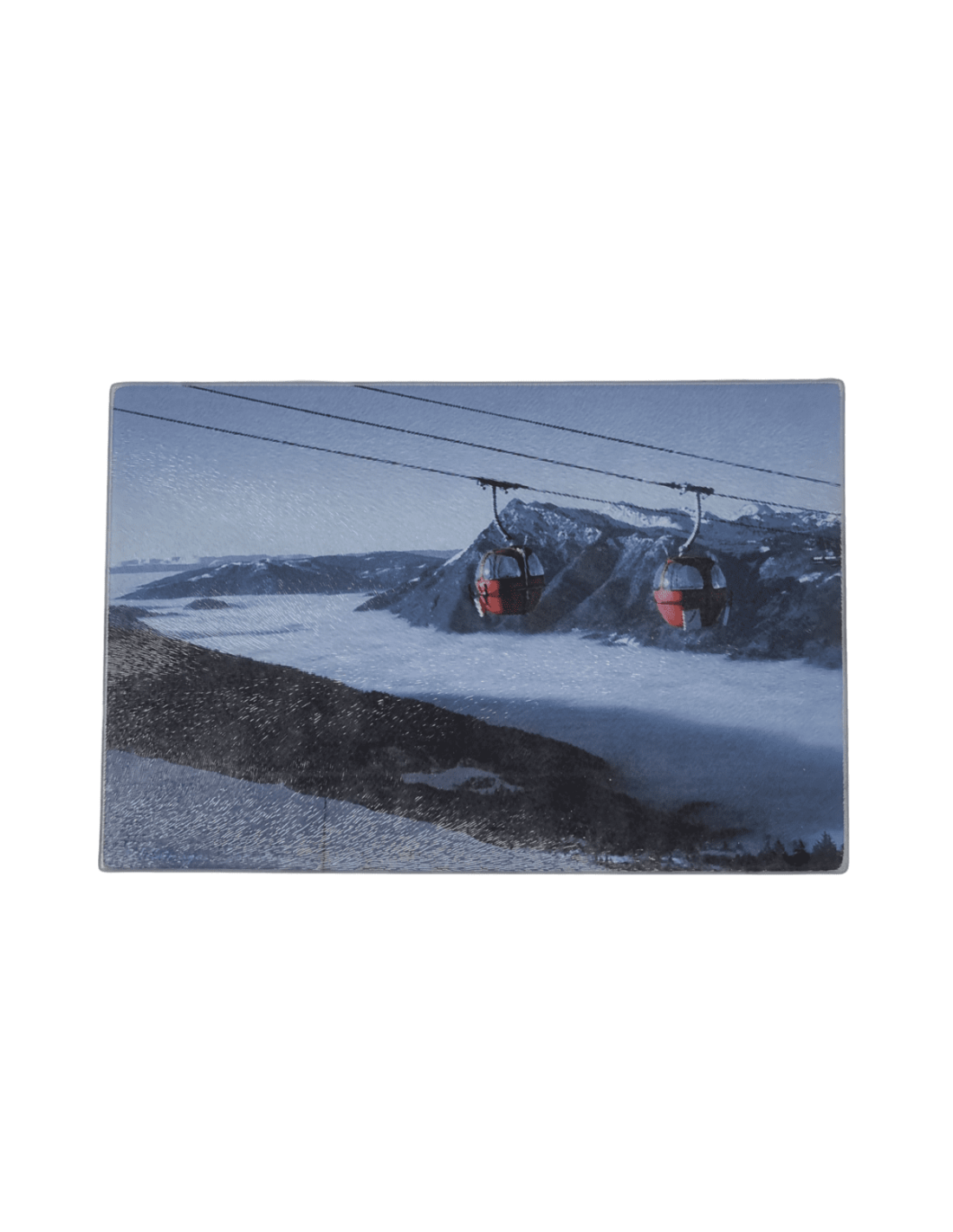 Cette planche à découper 20 x30 cm multi-usages en verre trempé avec un décor typiquement montagne pour une cuisine esprit chalet