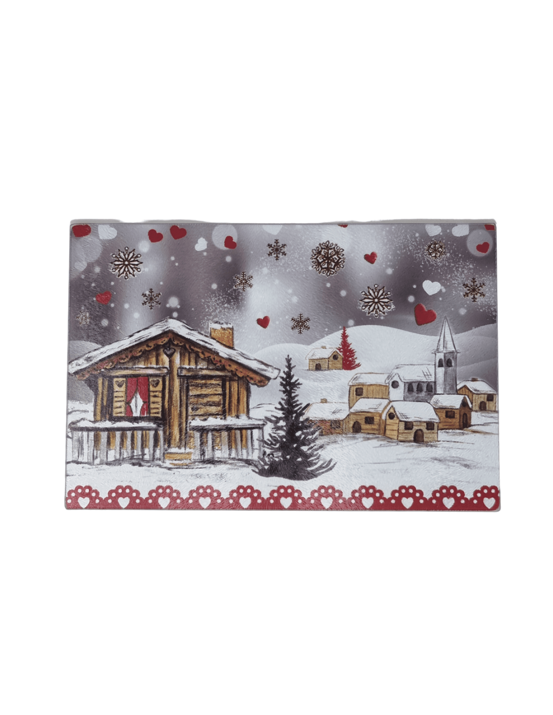 en verre trempé , résiste à de fortes chaleurs et son décor montagnard s'accordera avec les autres accessoires de votre cuisine